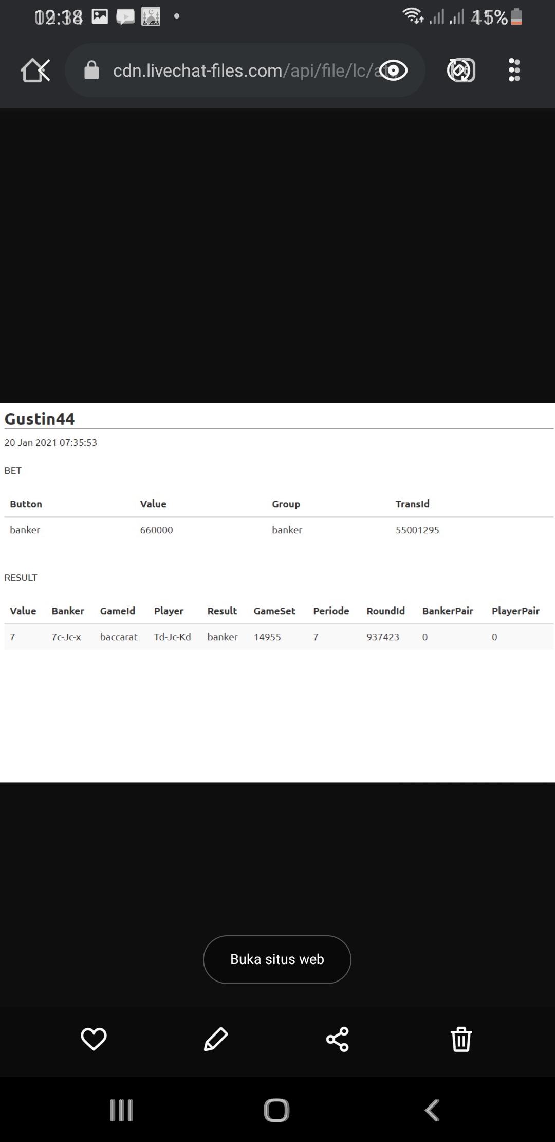 2. oh ya sob team kami minta bukti ss transaksi sobat beting sebelum result