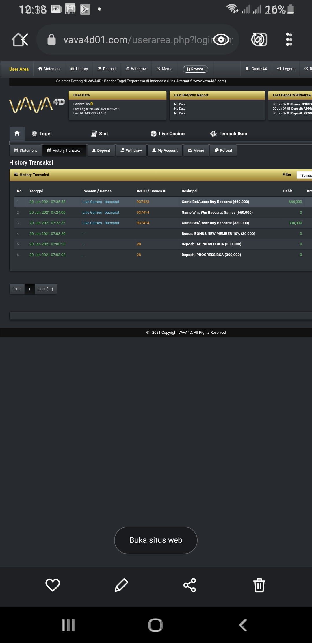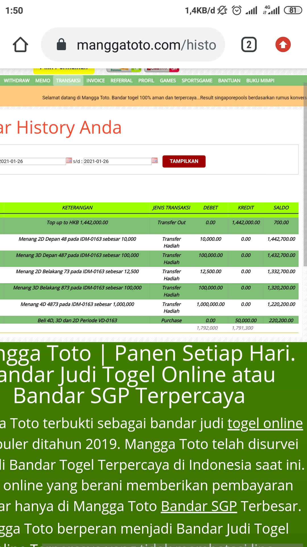 44. Ini foto screnshort bukti saya bermain di bo poin4d. Saya menang dan dibayar, sesudah itu akun saya diblock