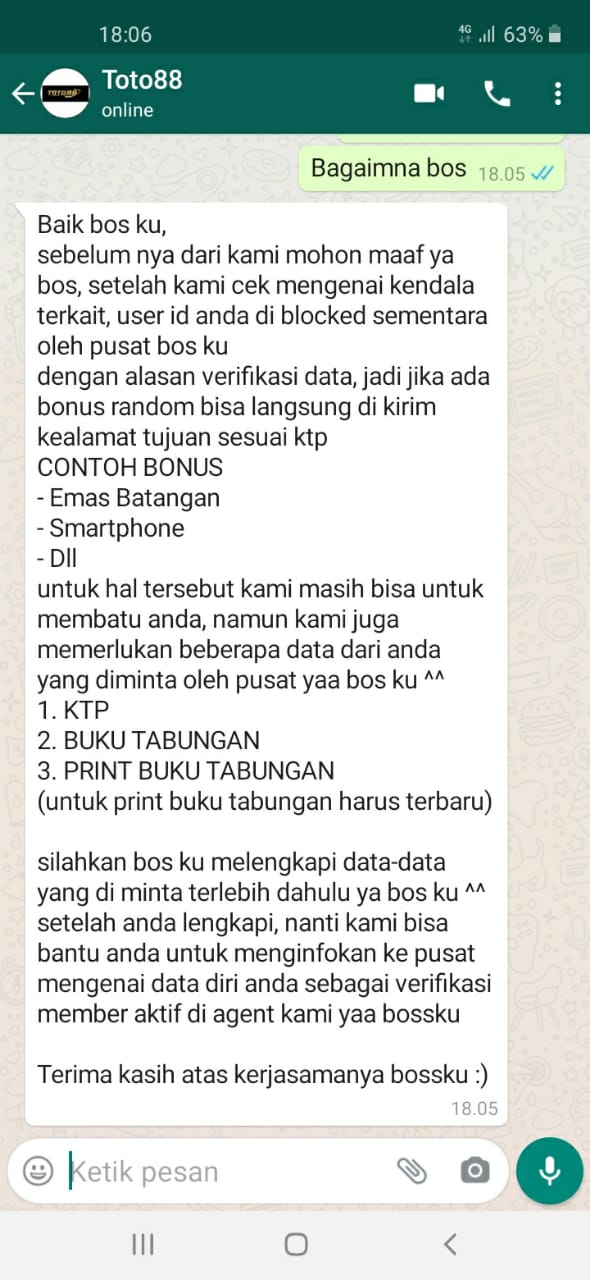 BUAT LAPORAN PENIPUAN OLEH AGEN TOGEL ONLINE