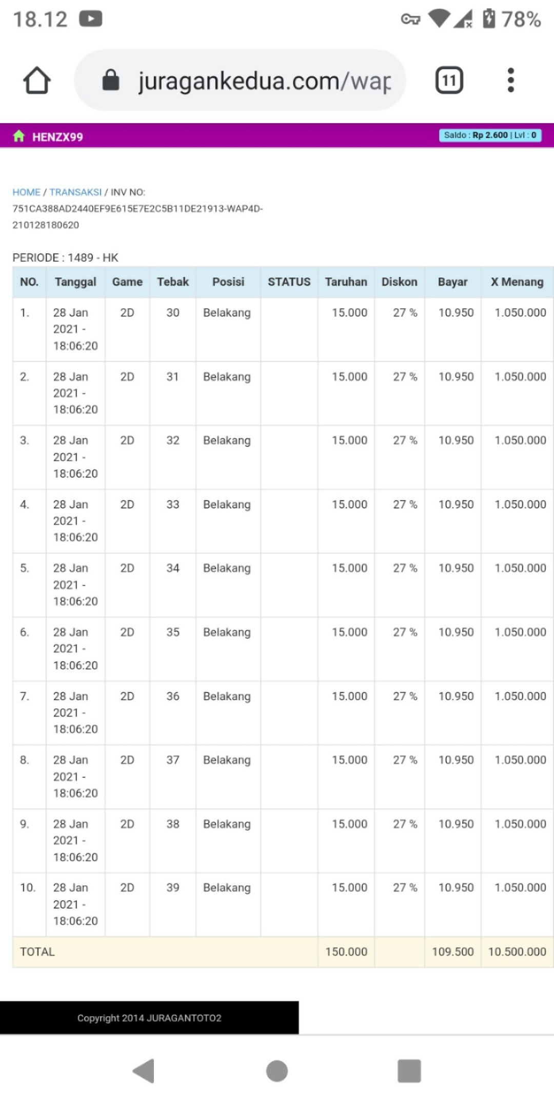 1. oh ya sob team kami minta bukti ss transaksi sobat beting sebelum result