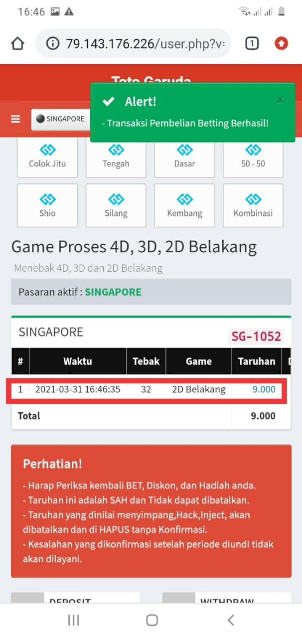 1. Sebelum nya saya sering info kan sesudah Bet hasil transaksi di screenshot itu untuk bahan bukti kuat,, tentang bo angka emas itu bukan recommended kami dan mereka tidak ada itikad baik maka dari itu bo angka emas kami naik blacklist ,