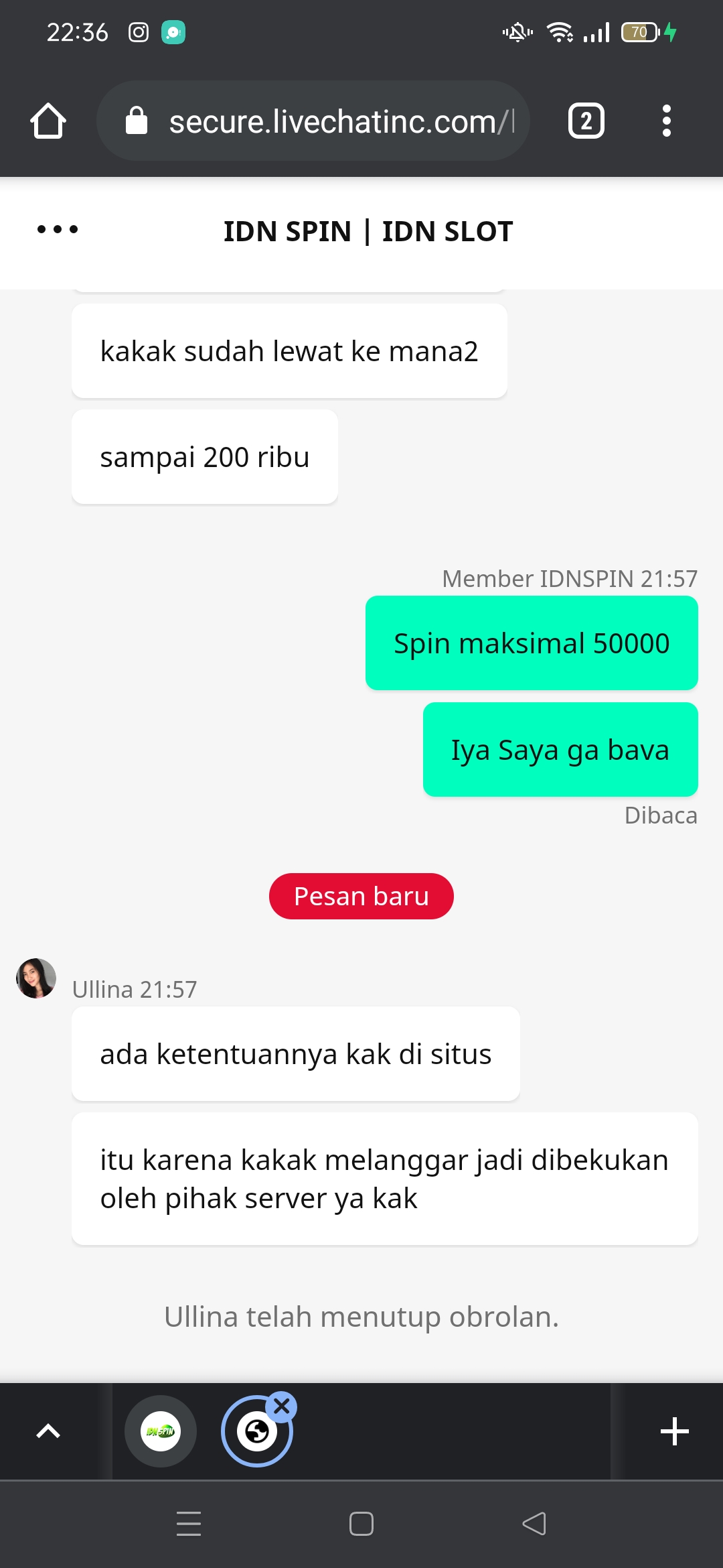 Laporan / Keluhan : wd tidak dibayar dan aku di bekukan idnspin karena menyalahi aturan