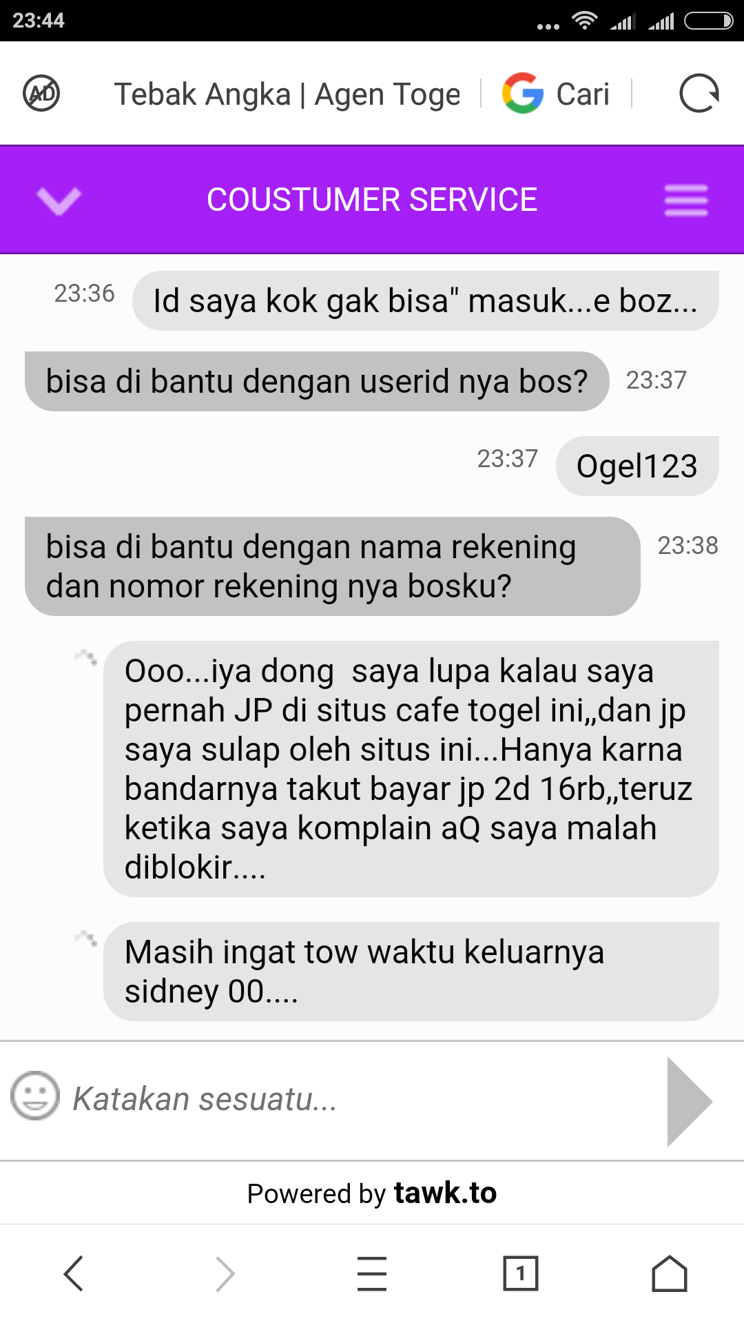 bos saya yanti main di bo resmi4d.com saya ada jp malam hari jumat tanggal 30 maret 2018 pasaran HK namun setelah saya buka akun lagi kok tidak bisa selanjutnya saya chat CS malah kolom CS di hilangkan tanpa maksud, dan maksud untuk konfirmasi malah hilang bgtu aja rencana mau WD sdh tidak bisa,mohon bantuanya bos,,apakah ini saya sdh merasa di rugikan