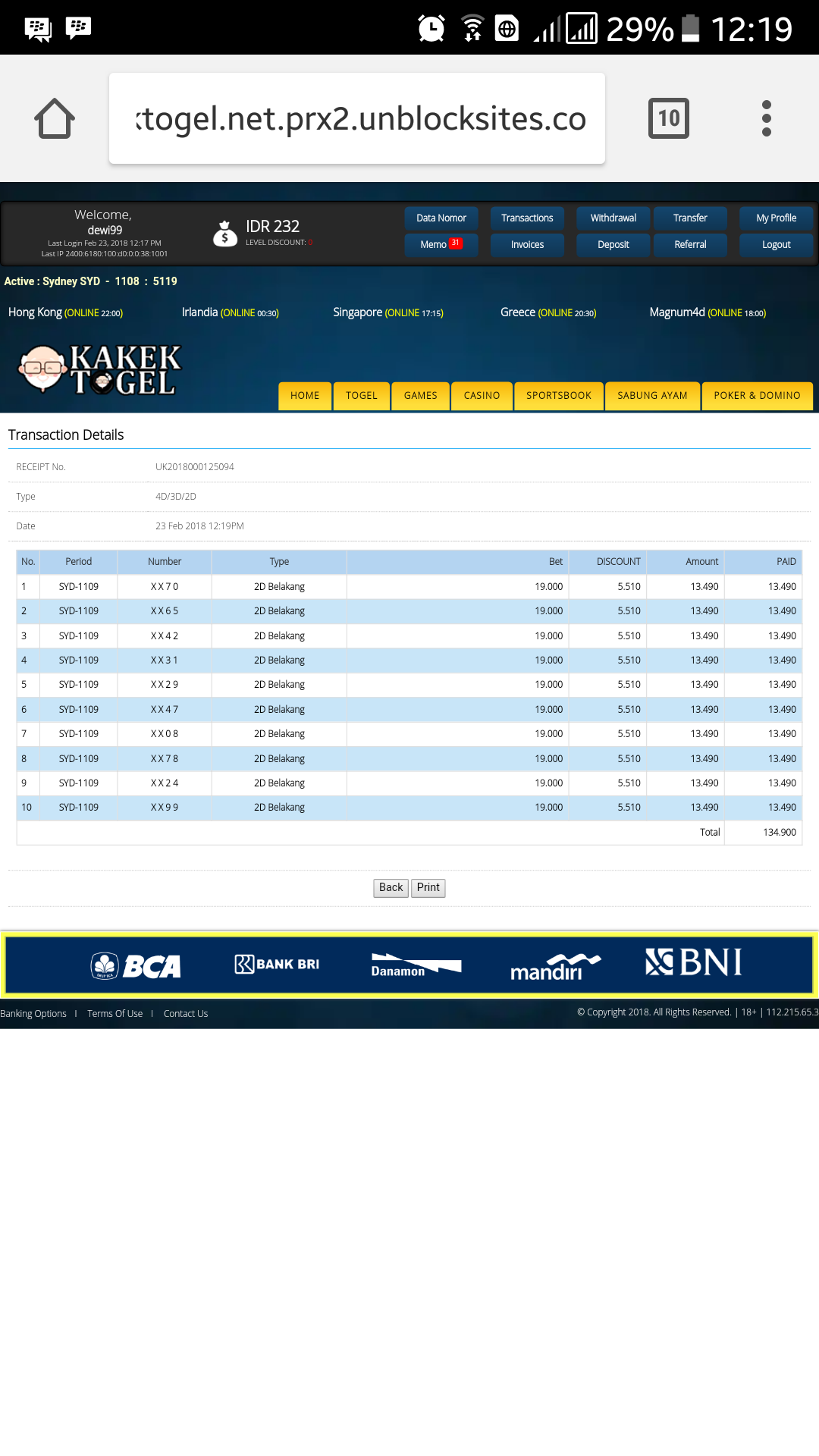 sama bos smlm saya jp 2d 25rbu tpi bgtu result betingan di ganti alias ilang,sayang ga sempet ss invoice bet nya jdi ya sdh iklaskan