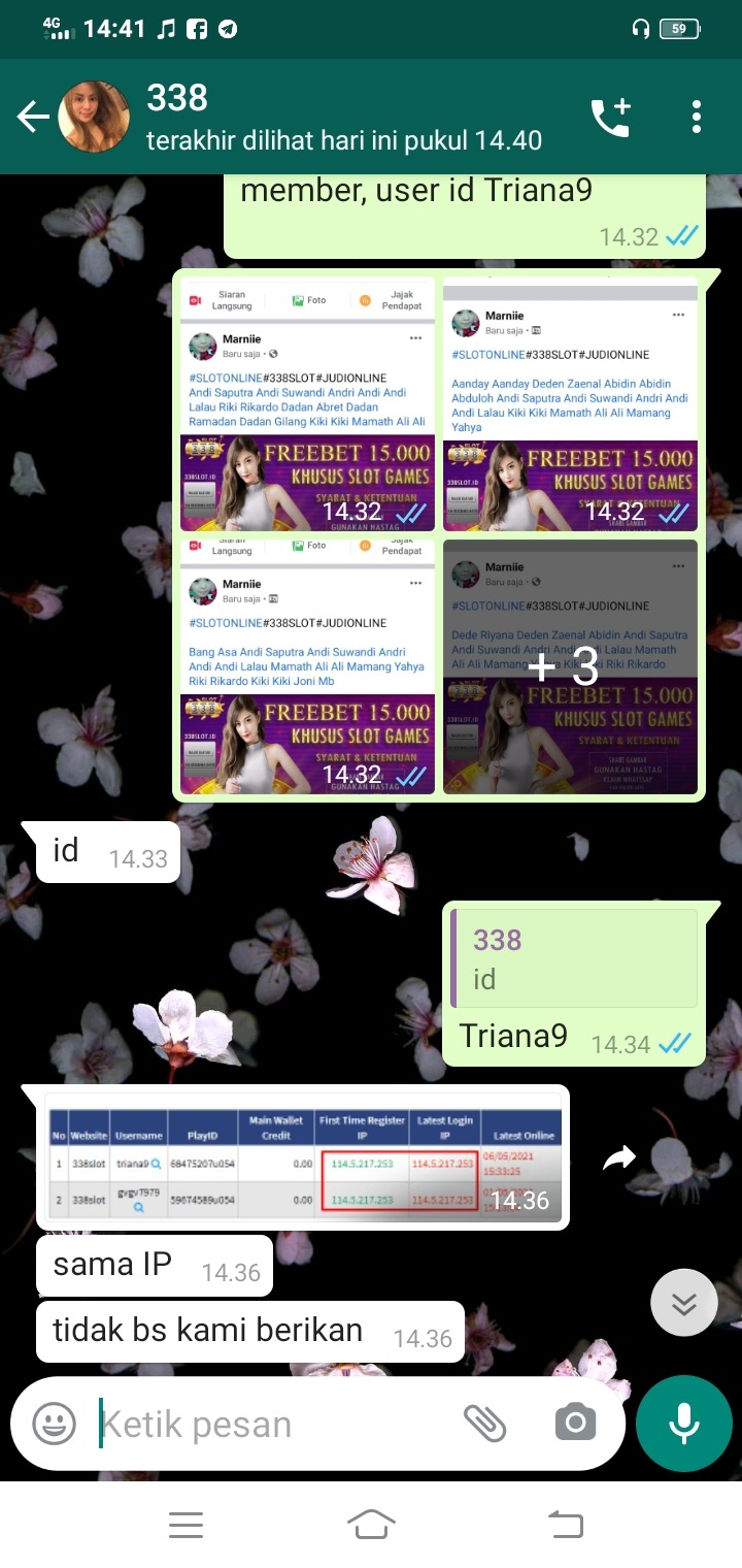 10. Bo 338slot ngadain promo freebet tapi gak ngasih, alasan kesamaan IP padahal baru pertama kali akses ke situs itu. Sudah share ke 5 grup FB dan ig ternyata sia-sia
