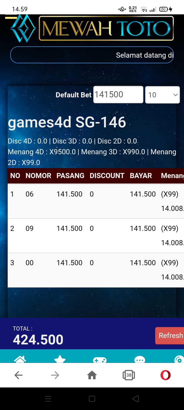 Keluhan: Mewah Toto merubah/edit bettingan sy