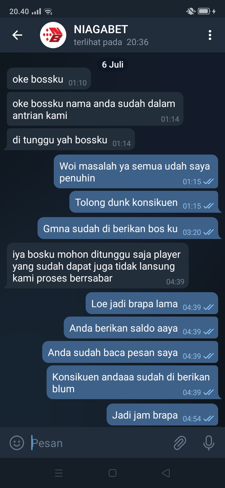 27. Tolong bos untuk kalian jangan pernah bermain di niagabet untuk promo tidak jelas admin telegram ya sudah berkata di proses nyata ya tidak ada masuk saldo sama skali sama saya,ini semua bukti bukti penipuan dari niagabet untuk polisi togel mohon bantu sebarkan penipuan niagabet ini