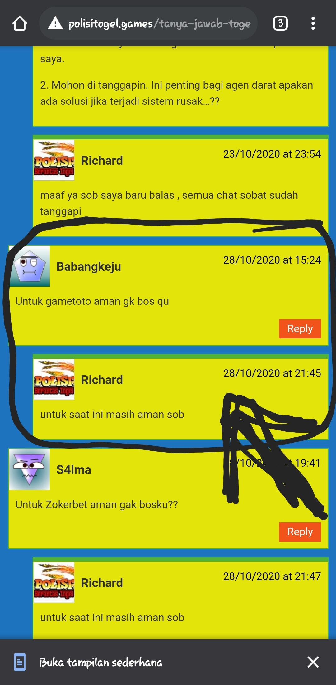 5. Bunk richard mau tanya kalau bo totojitu aman ngak ya