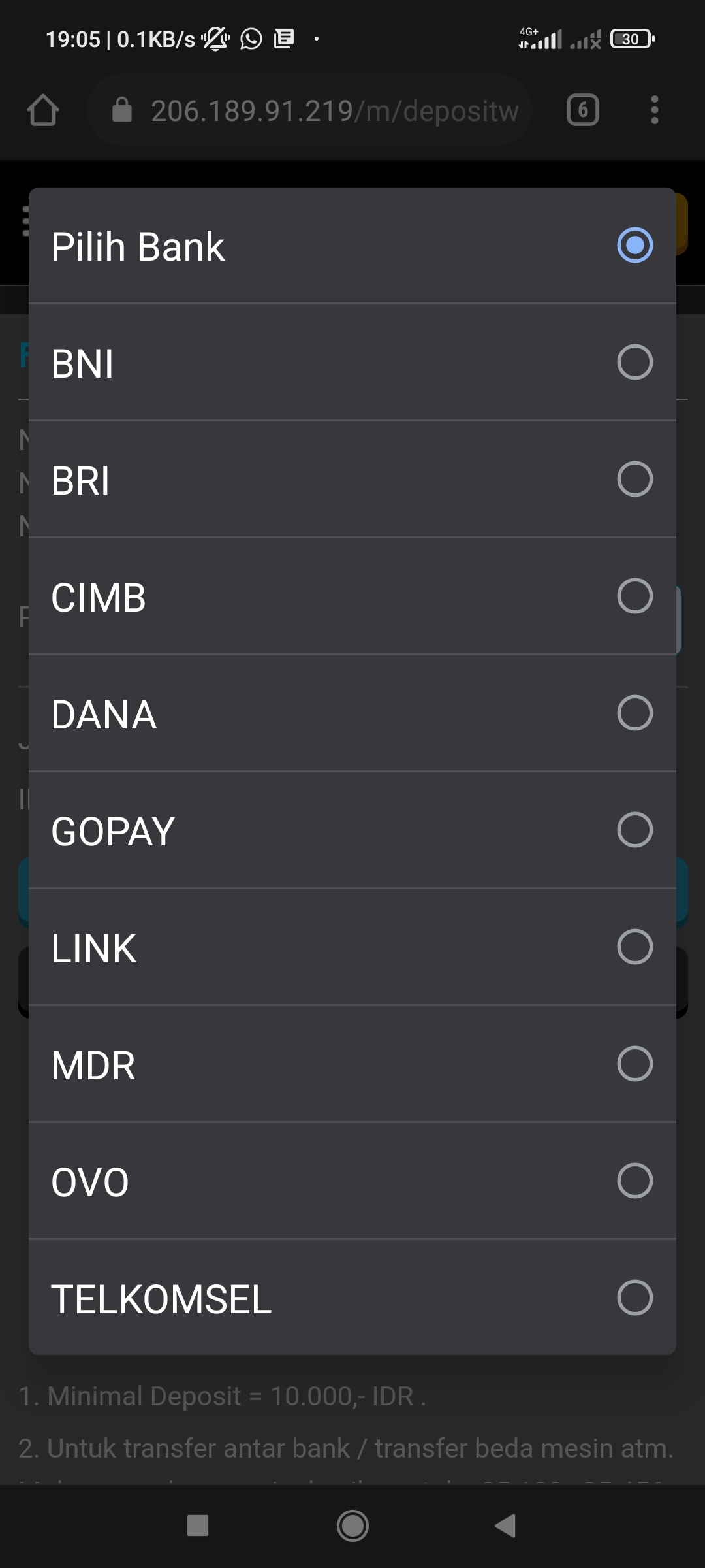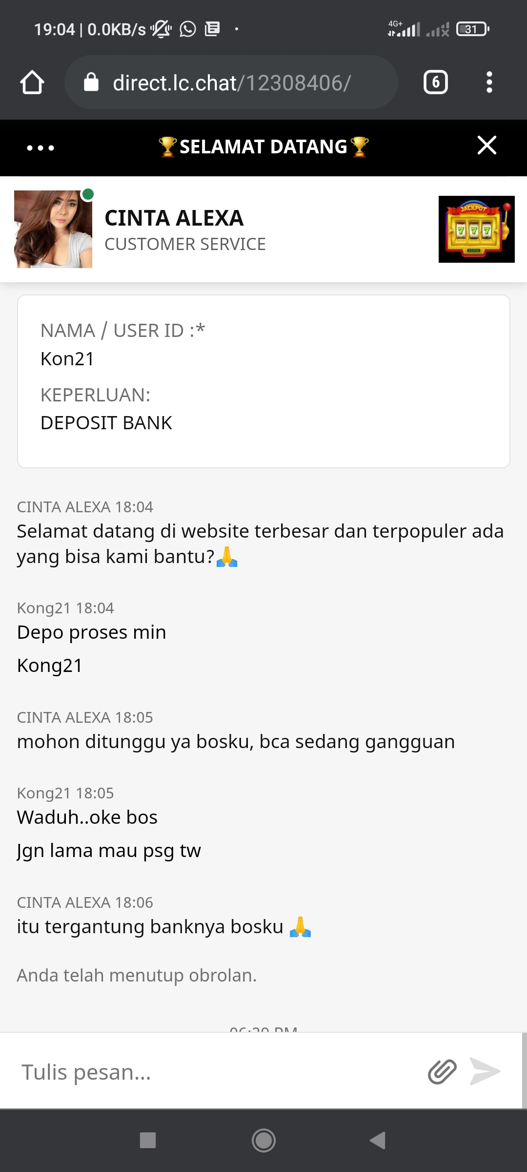 Terus saya chat gak di balas lg..saya wd pun gak di proses dan depo saya yg bca jg g di proses..form depo tidak ada lagi pilihan bca