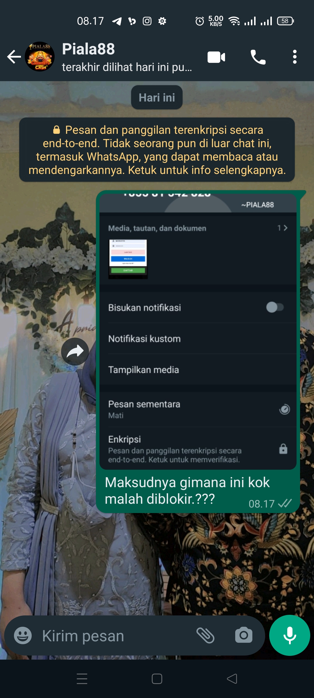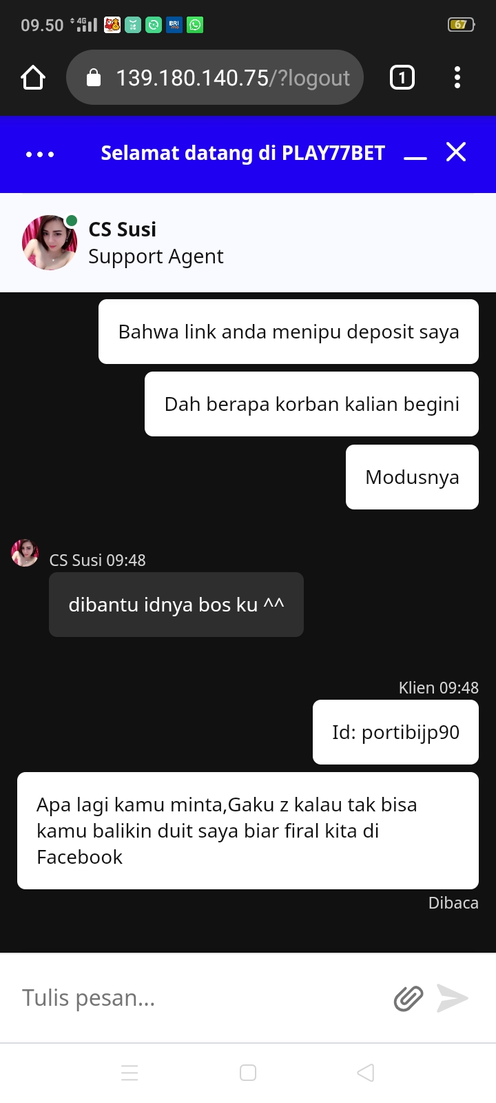 42. di chat pihak admin langsung blok di bagian chat..jadi tidak bisa mengadu….mohon bantuan nya bosku