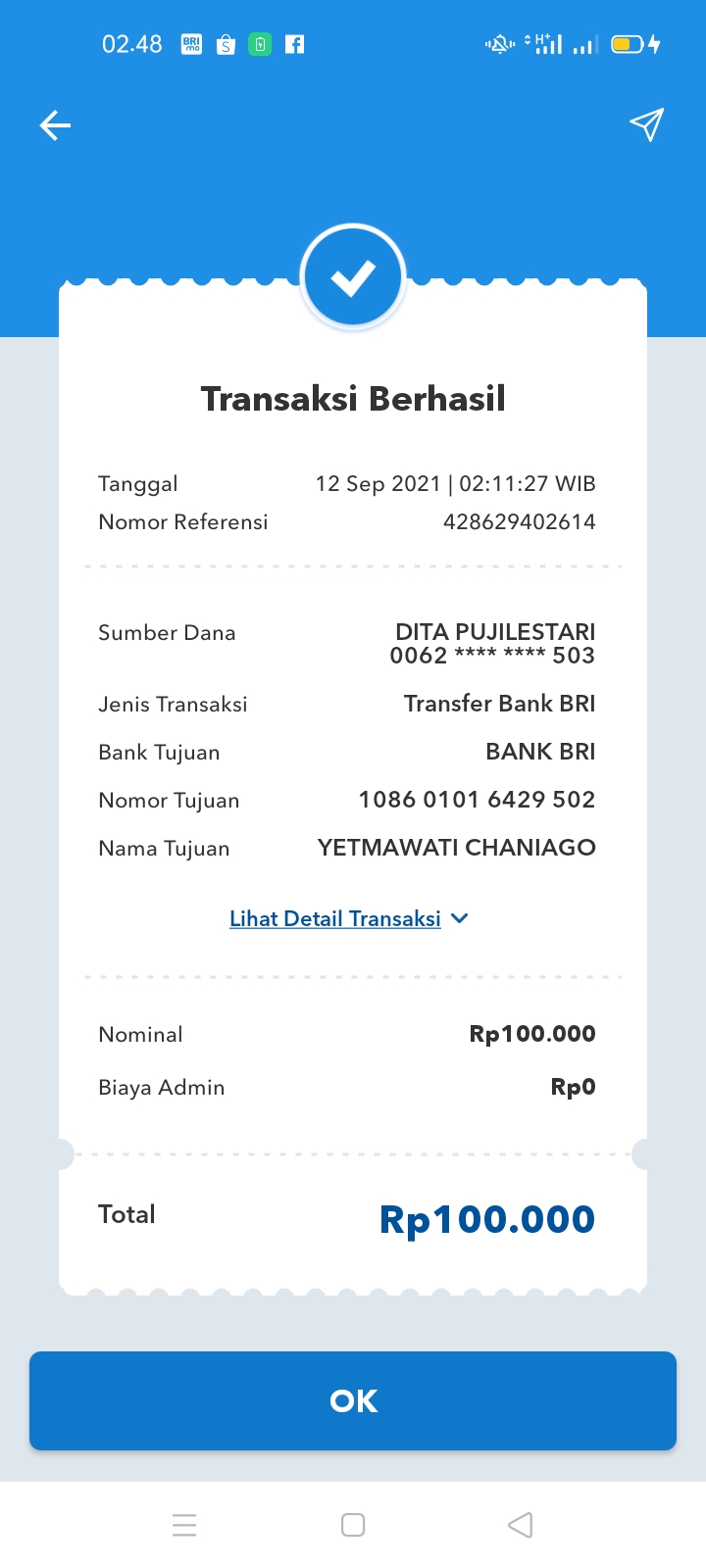 Nama rek : DIxxxxxxxSTARI
