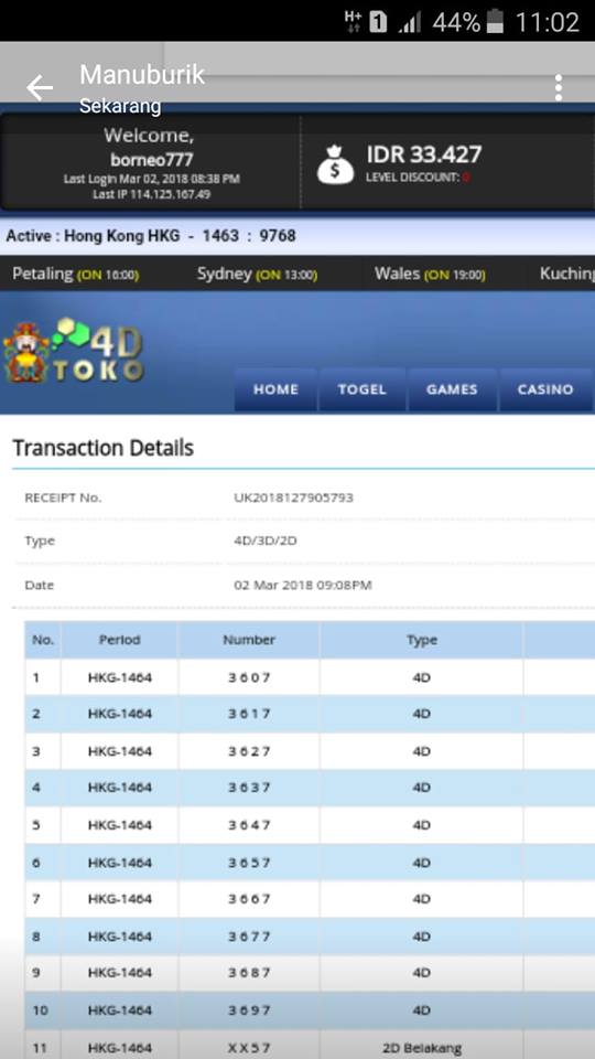 33. ini saya lampirkan bukti nya bos….saya melaporkan bo rodamimpi..saya jp pasaran hk sbnyak 400 lembar dan akun di blokir