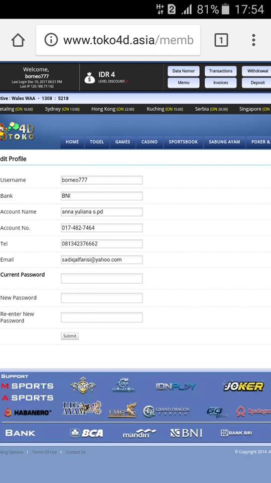 1. Data Bank Anda ( Di Rahasiakan ), Data tersebut Khusus untuk Agen Judi Online Yang bersangkutan sebagai Verifikasi