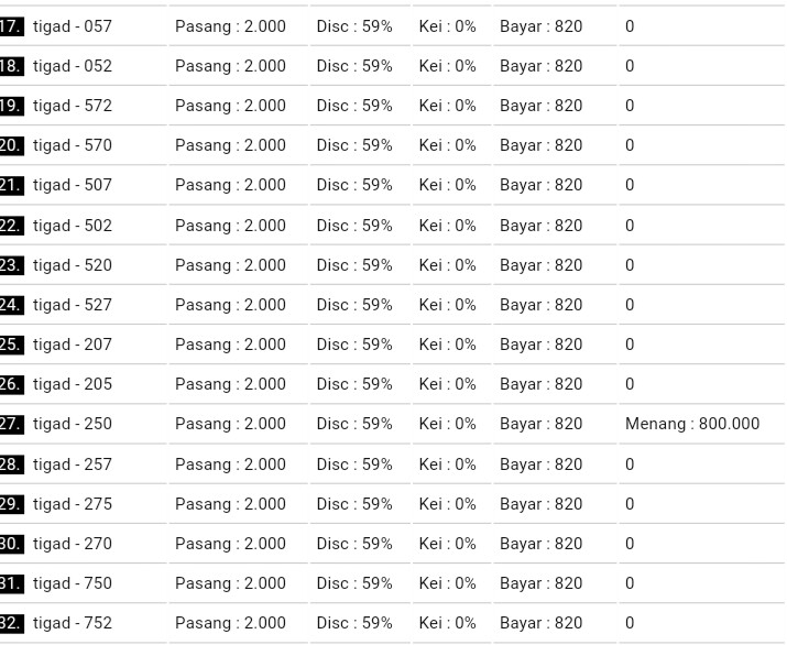 RESULT HONGKONG 3617 Saya betting Rp.5000