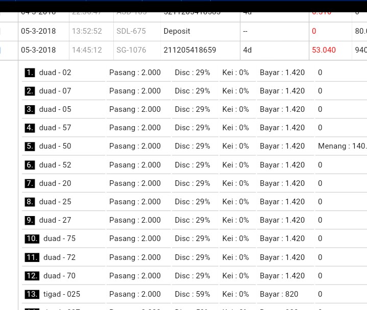 42. Mlm boss, saya curiga BO PANGERANTOTO3 sudah tidak FAIR lagi. Pertama, WD lama. Kedua, angka betingan di edit. Sudah dua kali angka betingan saya yang tembus di edit mereka. Saya punya bukti karena data tersimpan di komputer. Heran nya pas dilihat di transaksi angka jadi berubah. Pertama, tidak percaya kirain saya salah etika. Saya bet lagi di lain waktu, tembus ! kok pas dibuka angka ga berubah. Pas dilihat di transasi angka sudah berubah tidak sesuai data yang saya simpan. Saya sarankan sama member nya lebih baik STOP main di PANGERANTOTO3. Terlalu resiko !!! gmana klo JP ratusan juta !!!