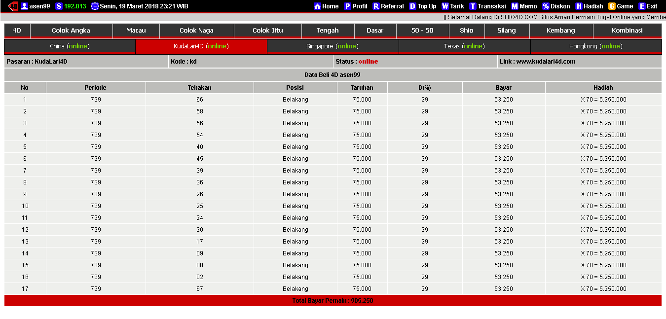Laporan / Keluhan : Shio4d menganti bet sy 21 ke 24.