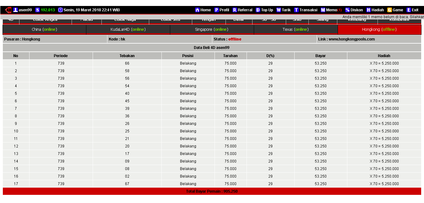 Laporan / Keluhan : setelah jp no di edit di bo hokky4d