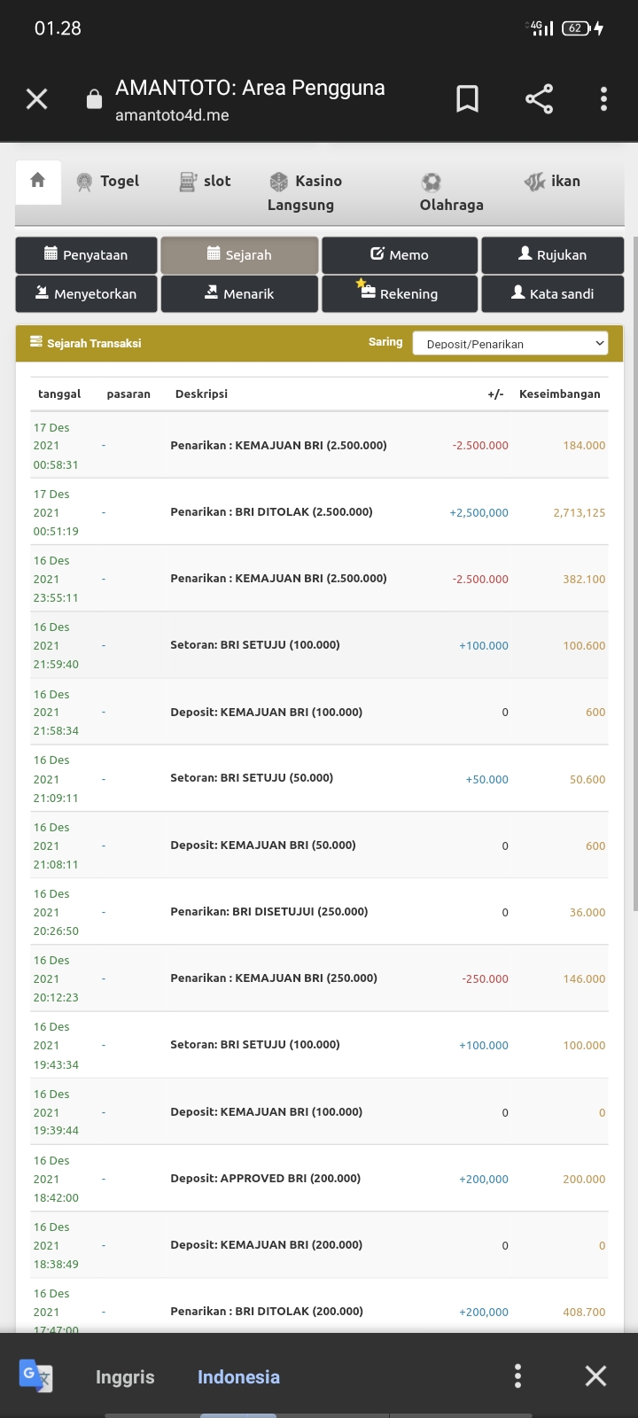 3. saya juga kena.. kmrn mlm ads wd 6000 gk di proses dan dan smpi akun dan wa sy di blokir nya.. tlg di kondisi kan… policetogel