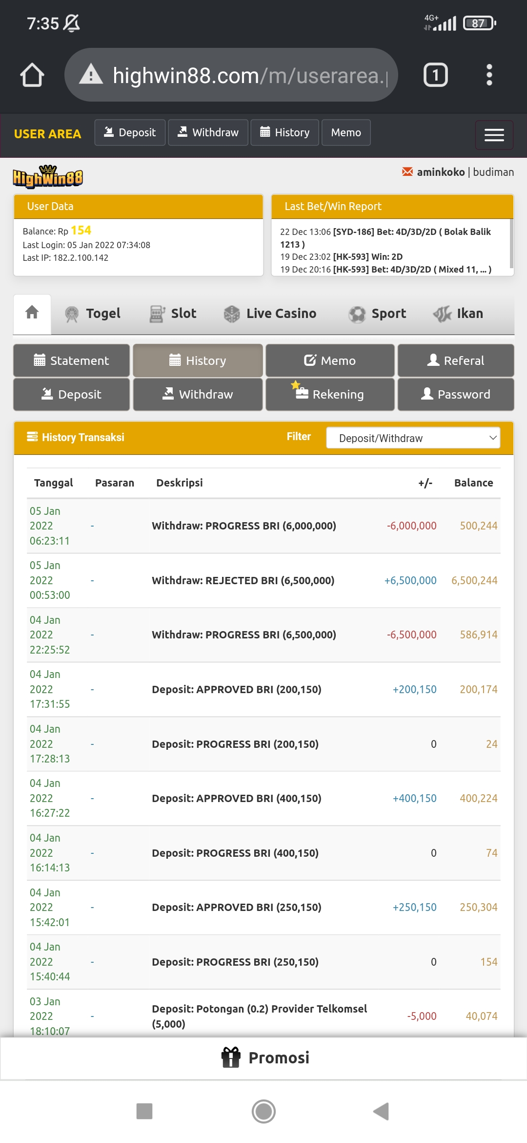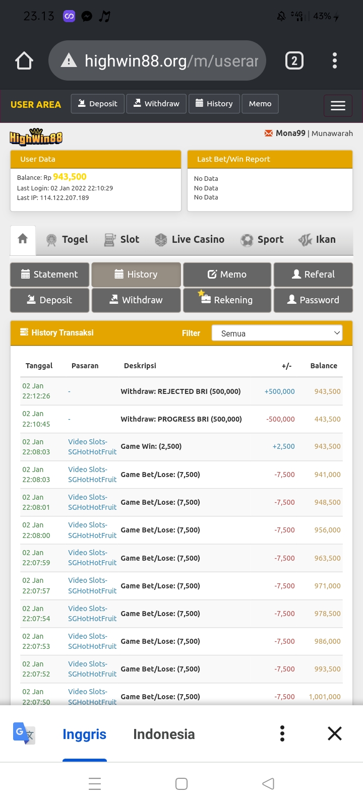 Highwin88 wd ngga d acc malah akunnya d retas. Penipu