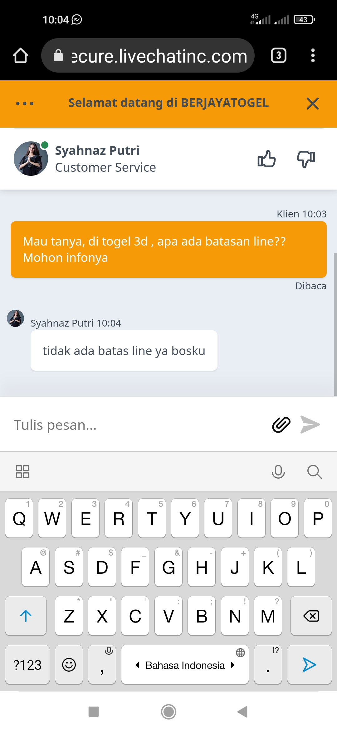 37. Saya satu bulan lebih main togel 3d di bo berjaya togel,saya slalu jp, dan saya mulai dari awal main, sy main 500 line, dan sebelum sy main sy sdh live Chat katanya cs nya bebas line, tp hr ini tepat tanggal 03 january 2022,akun sy tiba2 di benned, saran sy jgn main di bo berjaya togel, krn bo berjaya togel takut kalah