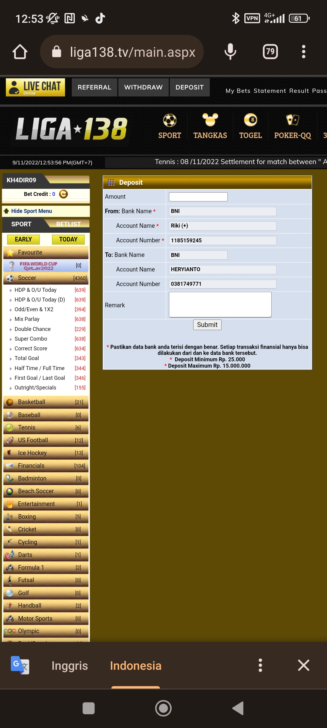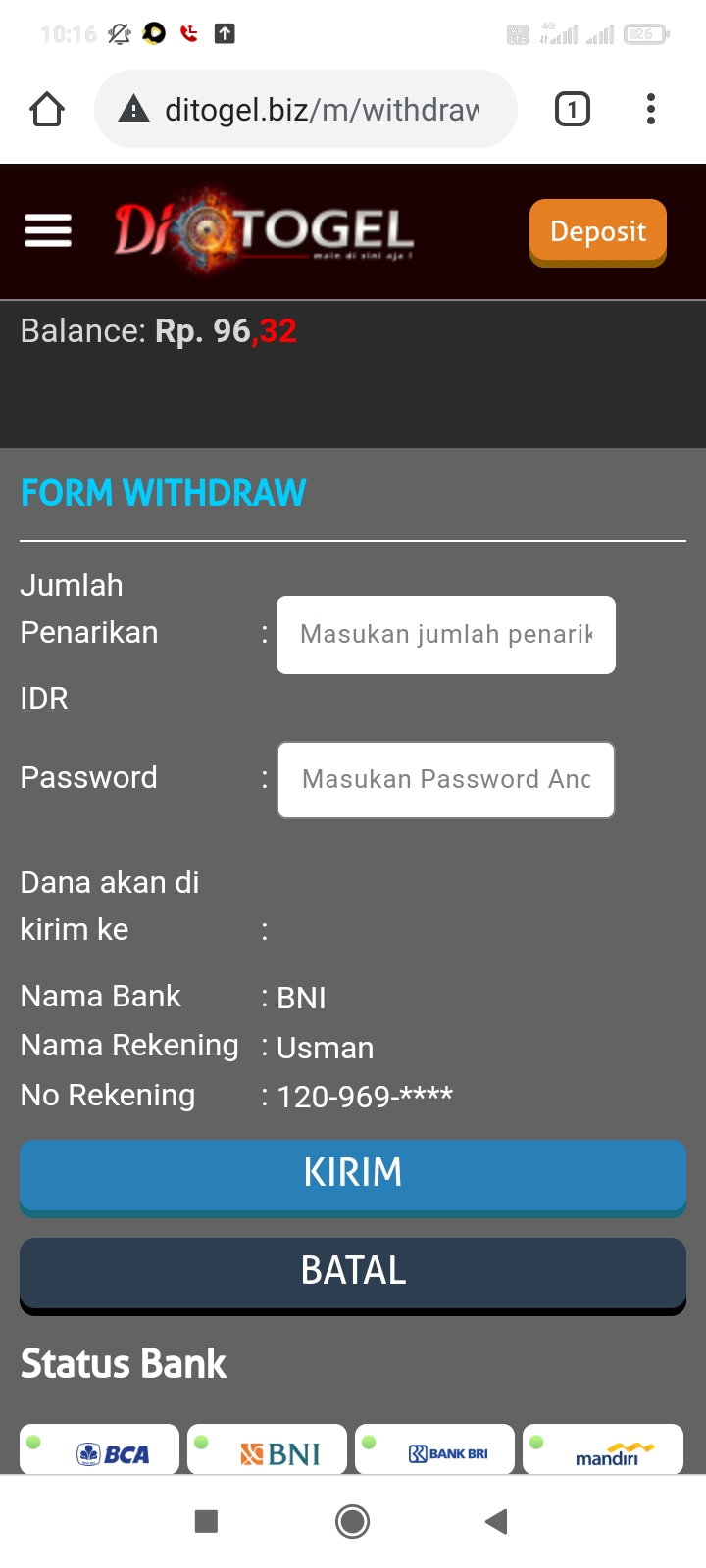 SAYA DARI KEMARIN WD SAYA TIDAK DI BAYAR… TOLONG DI TINDAK SITUS SEPERTI INI…