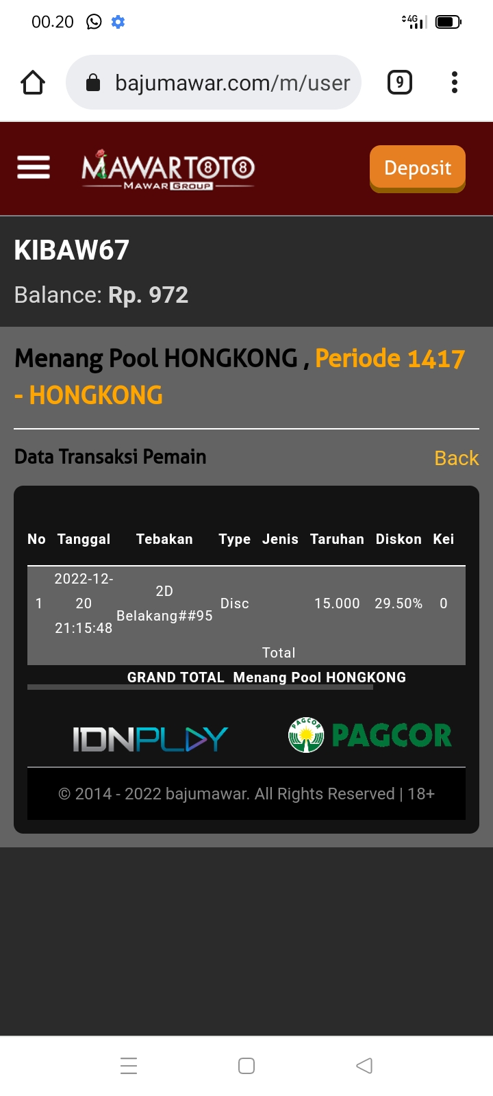 15. Saya bet 20 line Taiwan, setelah reslut, sy JP, sy kembali bet HK 10 line, sisa saldo 4.094.000, Sy WD TDK proses, sy cek histori WD batal saldo deposit awal saya saja di kembalikan 805.800, teman main di situs itu sudah chat invest 20 line TDK masalah, yang saya bingung seluruh kemenangan saya hanya 150.000 ,, ini permainan cs nya atau gimna bos