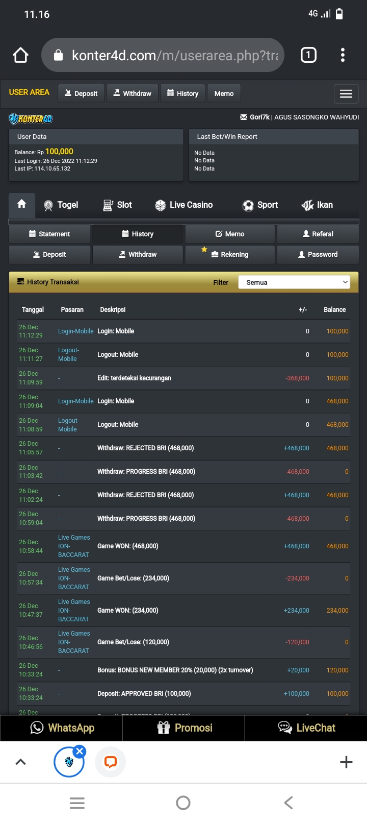 @Richrad Saya kan ambil bonus new member, sudah saya live chat katanya bonus new member bisa di pakai buat main live game, terus saya pakai buat main live game eh malah di maling saldo kemenangan saya, katanya saya main curang