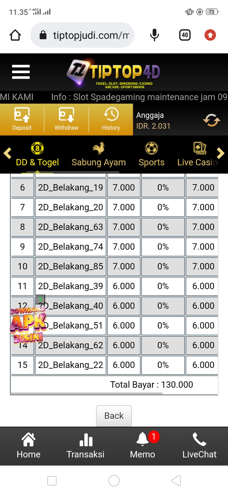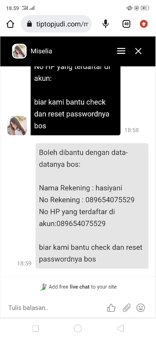 37. Bang saya mau buat laporan.kemenangan saya nggak dibayar sama TIPTOP4D, di chating di livechat langsung ditutup mohon bantuannya Bang