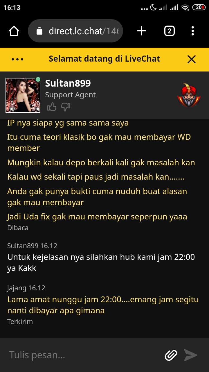 1. bisa sobat tunjukan bukti chat dengan admin nya
