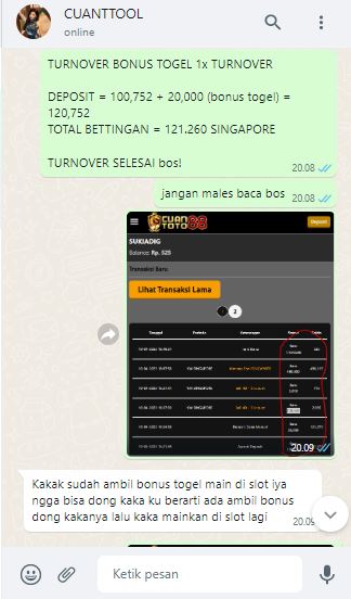 Laporan / Keluhan : DANA KEMENANGAN TIDAK DIBAYAR CUANTOTO88, saya claim bonus togel dan sudah saya selesaikan turnovernya x1, saya main slot bersih tanpa bonus apapun menggunakan dana kemenangan bettingan singapore, tetapi CUANTOTO88 tidak membayar dengan alasan bonus togel dimainkan slot