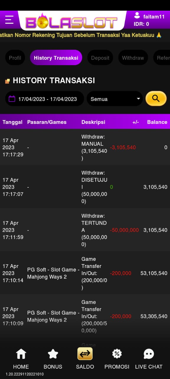 1. sekarang banyak bo tidak sanggup bayar saldo ref itu pertanda bo sudah tidak benar modal nya tipis hati-hati bermain di bo semacam itu