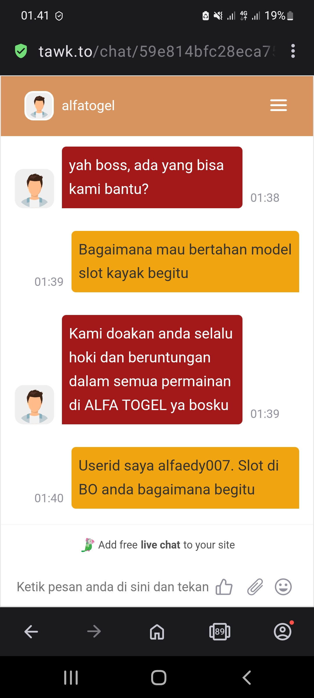 Laporan / Keluhan :wd tidak masuk live chat tidak bisa masuk tolong dibantu bosku situs himalayaslot