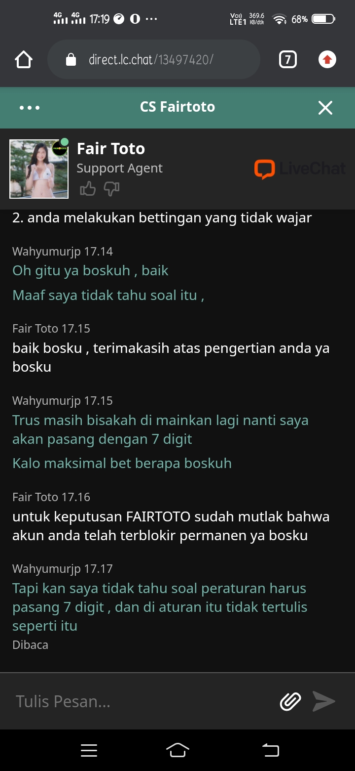 27. Kak tolong bantu saya akun saya di blokir dan tidak dapat di tarik dengan alasan transaksi saya tidak wajar di fairtoto