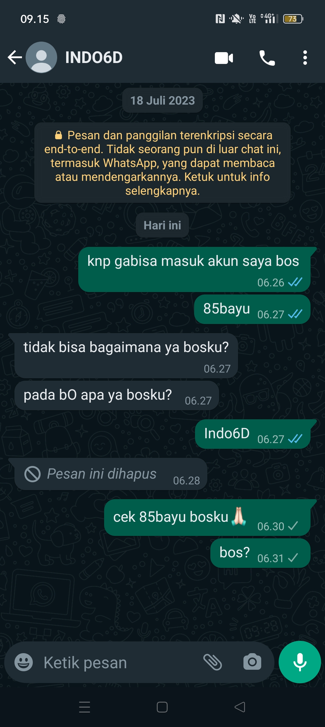 34. uang di akun sisa 3jt tambah jp 12jt langsung di blokir sama indo6D bantu saya bosku🙏