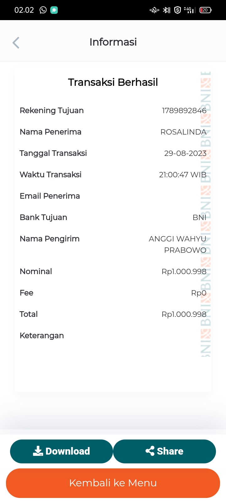 Nama Rekening : ARxxxxN (kemarin salah ketik) dengan nama ADRIAN