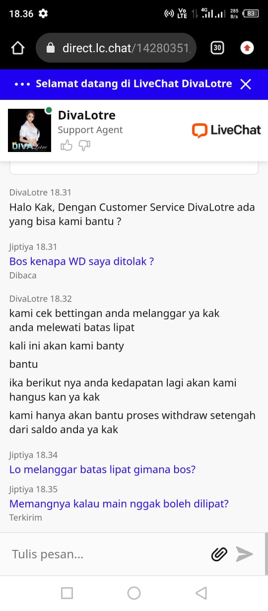 Laporan / Keluhan : WD saya dibayar separu sama BO DIVALOTRE, mereka bilang saya melebihi batas lipat, apa salah jika sama main dilipat