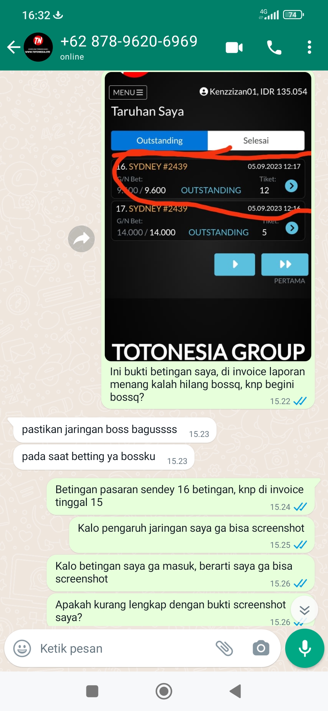 7. Bossq, minta tolong saya menang di pasaran sedney hari ini tapi ga di bayar, betingan saya di hilangkan dari invoice, padahal saya sudah chat admin bo totonesia dan melampirkan bukti screenshot tapi ga ada solusi, saya menang 7.840.000, dan ini sudah ke dua kalinya hanya saja yang pertama saya tidak punya bukti screenshot
