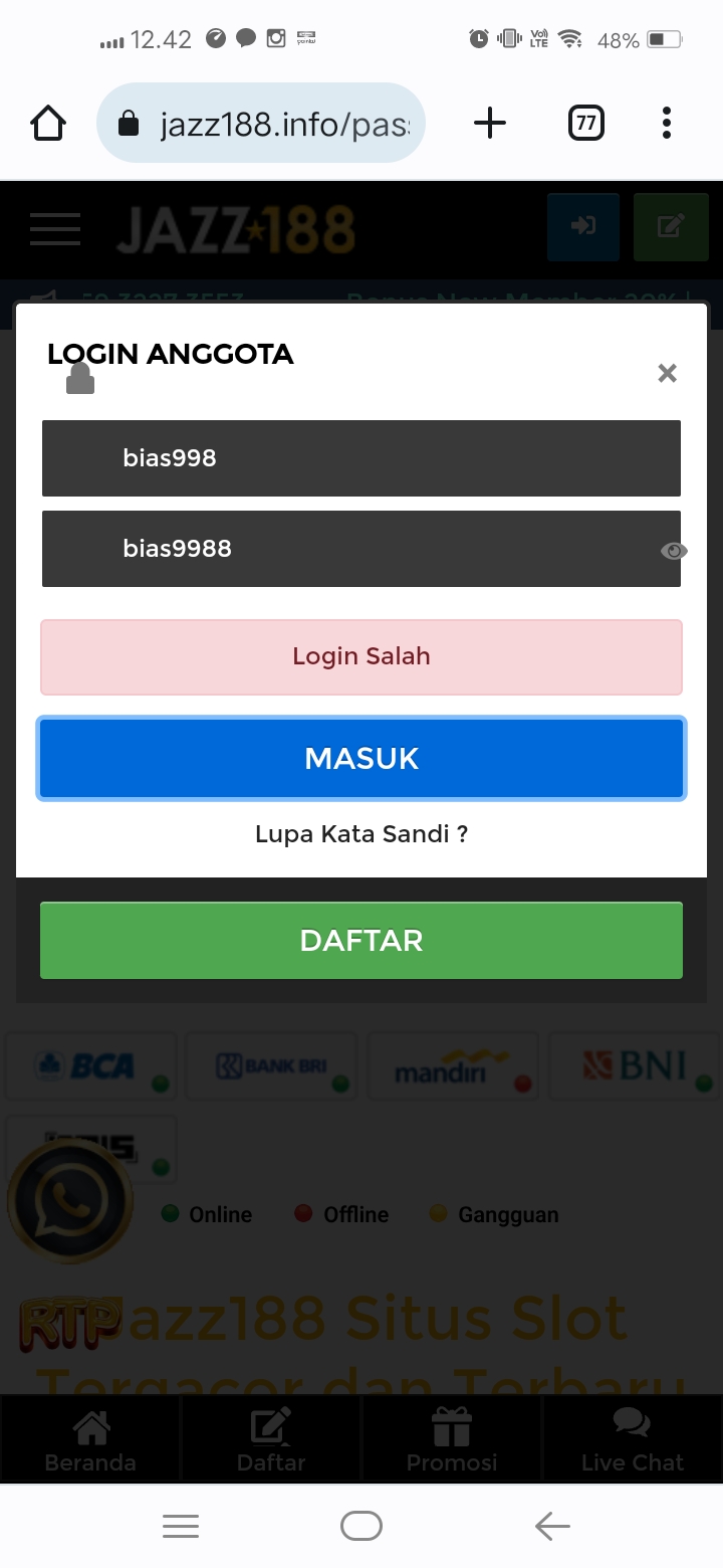 37. Id sya bias998 di BO jazz188 di ubah sandi saya tidak bisa wd hati hati kawan .,login bisa deposit lancar pas mau wd sandi salah JAZZ188 BAJINGAN