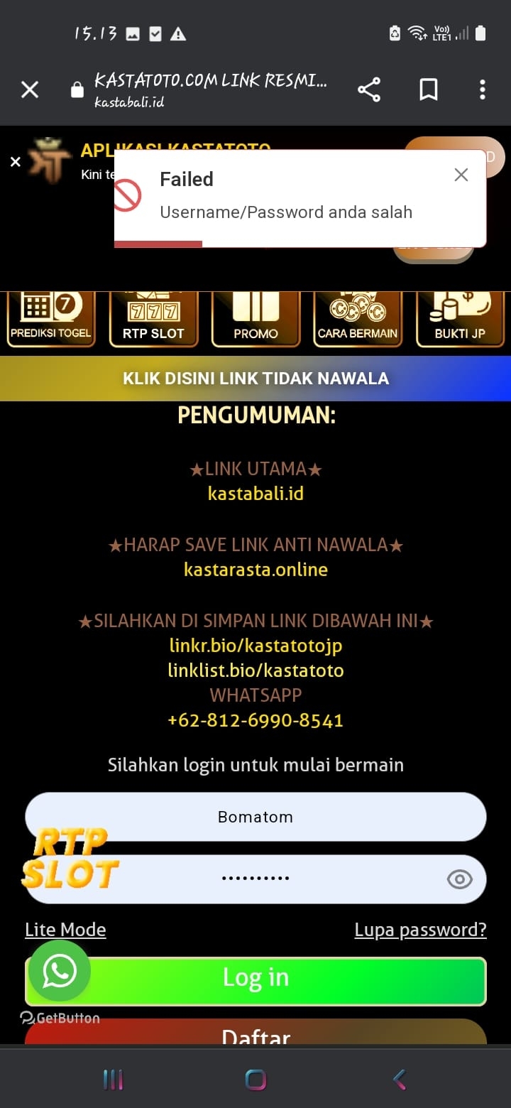 Kasta toto,wd 1.2jt gk di byr,akun diblokir