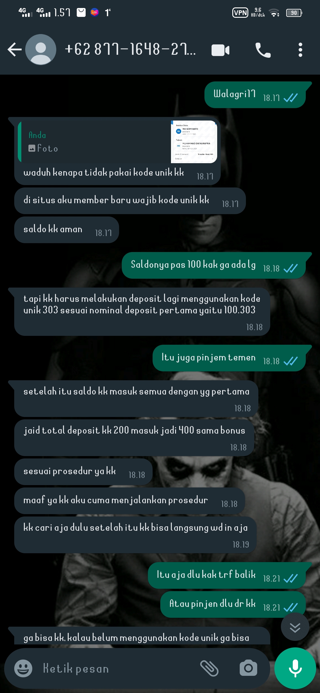 saya telah di bohongi pihak admin. akun saya di blokir dari pihak situs dan semua nya via chat wa dan segalanya sudah di blokir. mereka janji akan mengembalikan uang saya setelah saya menunggu waktu selama 3 hari. tetapi ketika sudah 3 hari saya malah diblokir dari via chat dan WhatsApp. bantu saya untuk kelanjutan nya. padahal saya sudah menang togel. dan uang saya di lenyapkan begitu saja dengan beralasan tidak boleh bermain silang homo. tetap disitu mereka ada silang homo. kalau emng tidak diperbolehkan diberikan peringatan sjaa tetapi akun saya langsung diblokir oleh pihak situs.