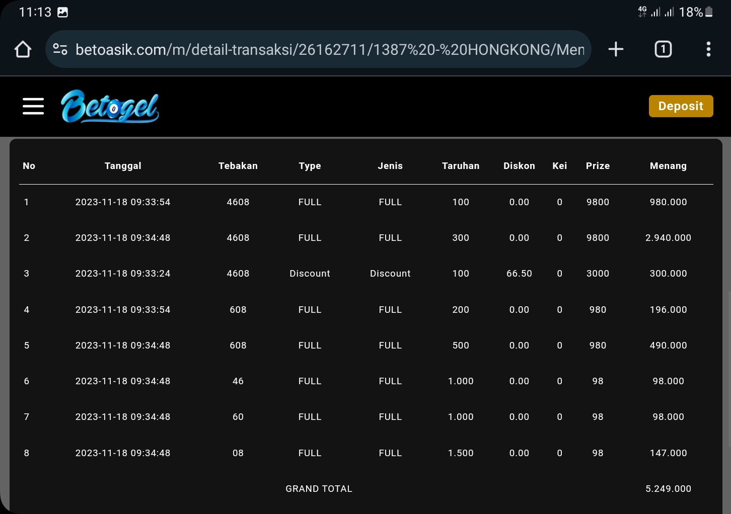 2. History deposit sudah di hapus dan itu saja yg tersisa , semua isinya deposit , ga ada wd .. kalo wdpun karna sisa deposit