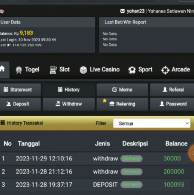 Laporan / Keluhan : AKUN HILANG SETELAH MENANG TOGEL DI SITUS ARIES TOGEL