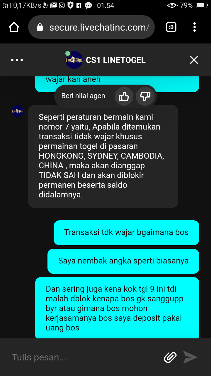 Laporan/keluhan: saya jp togel 4angka dan 2 angka total 50juta 500 dsitus linetogel ,4angka x5 dan 2 angka x5 akun saya malah dblokir alasan nya krna trjadi kecurangan pdhl saya sama sekali tdk curang saya depo pakai uang bos ,uang saya mlayang mohon dibantu bos dtindaklanjuti 🙏