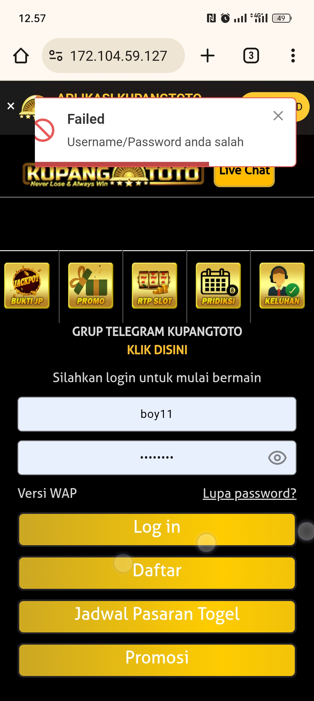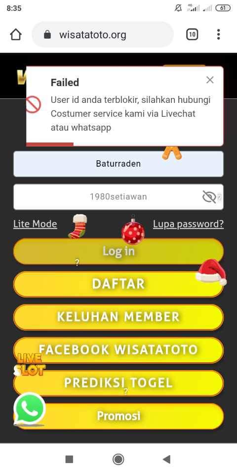 2. Id baturraden main di wisatatoto jp34 di putaran HK semalam wd ga bisa akun gak bisa di buka tolong bantuan min