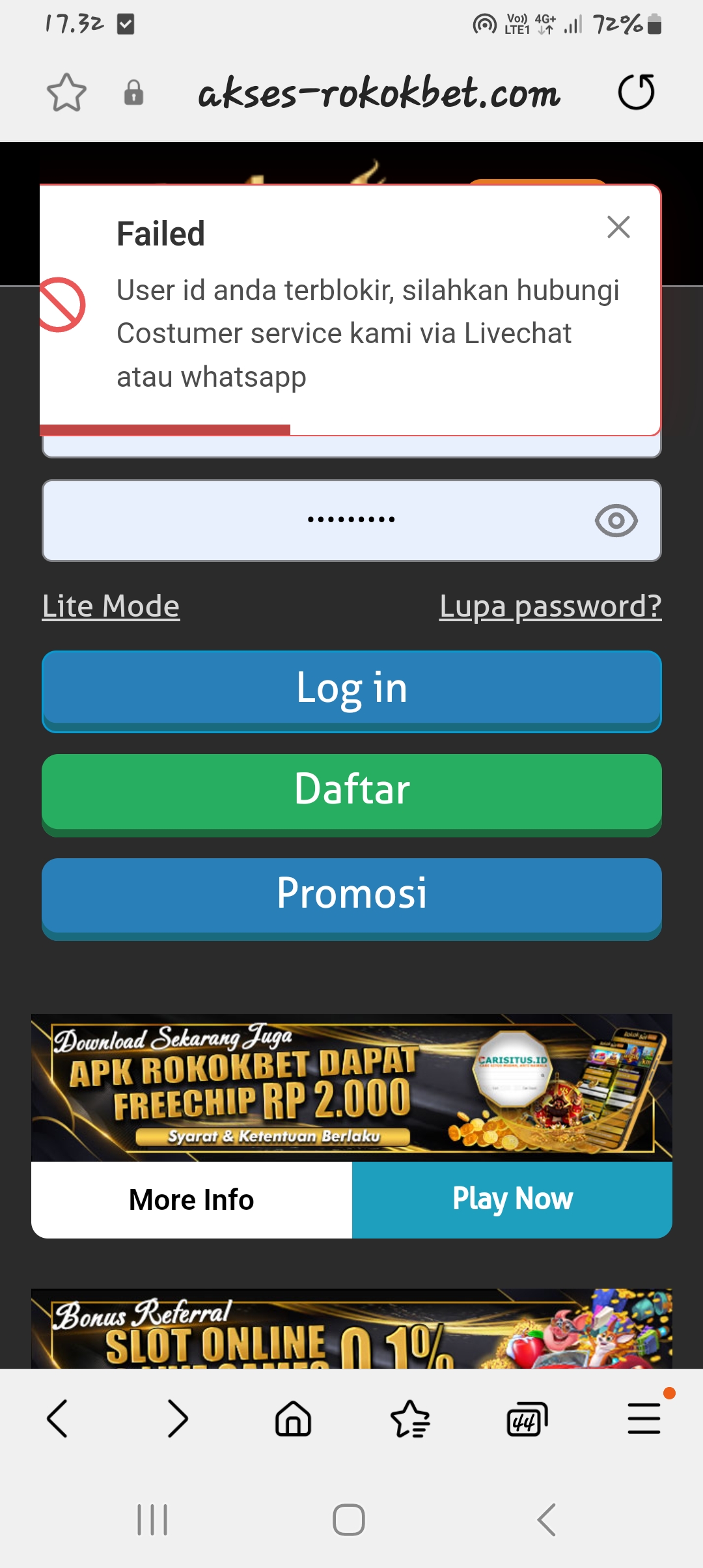 Wd 700 rb langsung di blokir id tanpa alasan yg jelas….