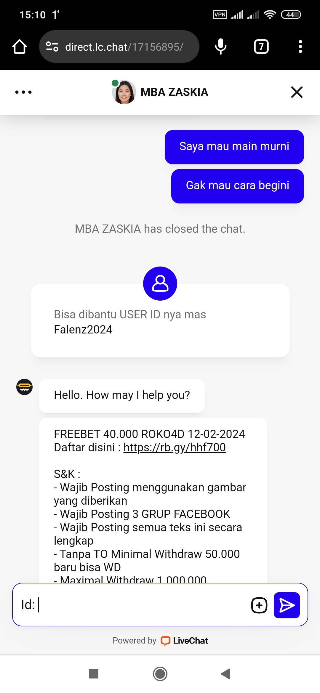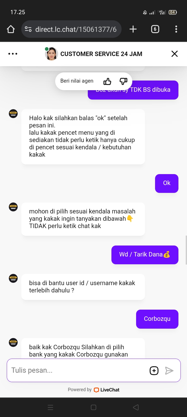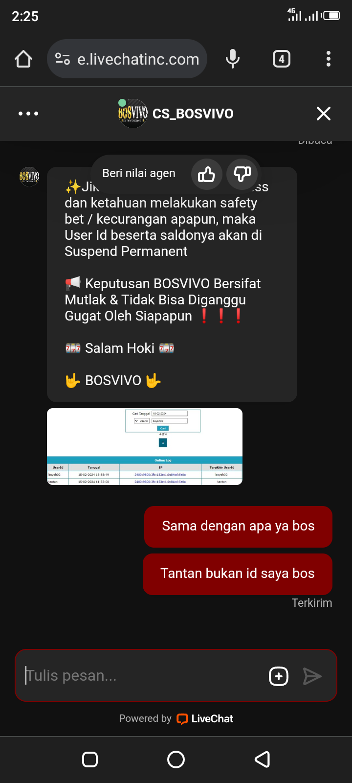 Saya live chat langsung di suspen…ga bisa buka lg aku ga bisa log in.mohon bantuan nya