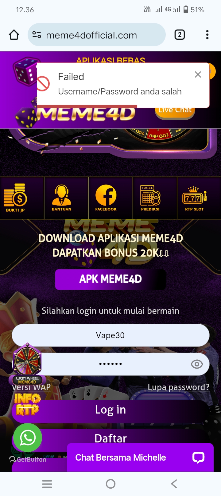 Saya melaporkan bahwa MEME4D tidak membayar withdraw saya sebesar 222ribu (receh) saya di telpon dengan alasan saya mengakali sistem , padahal saya main roulatte betting angka 25 line , id langsung di ganti password nya