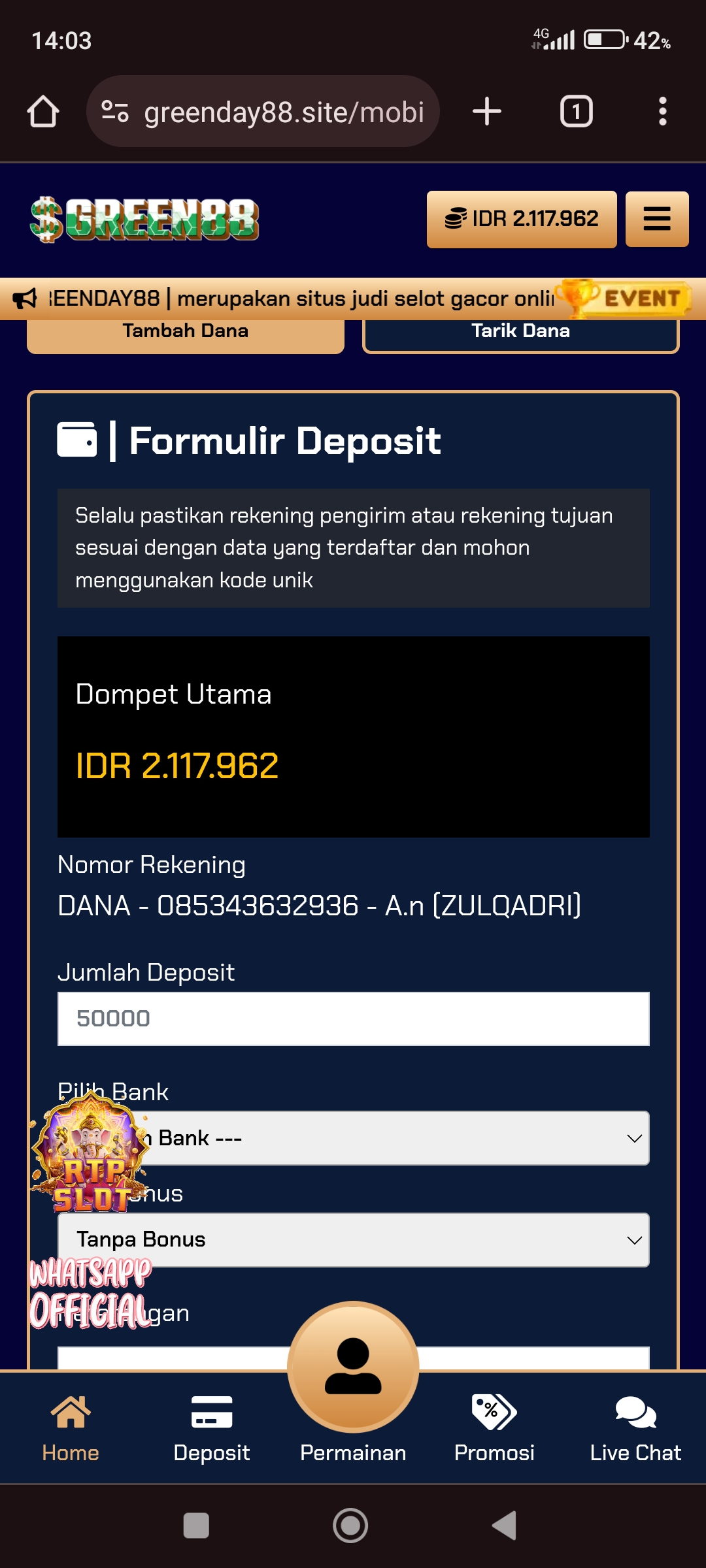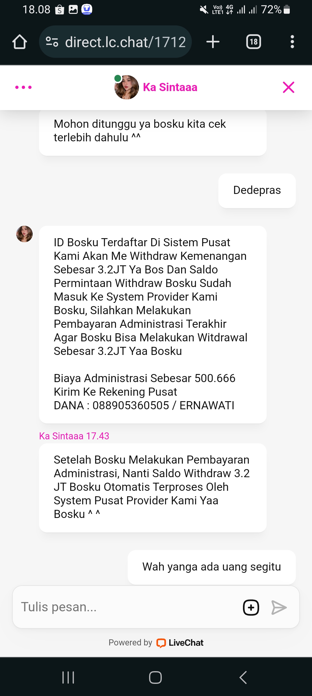 Ini termasuk penipuan kelompok mengatasnamakan slot dan togel mohon di tindak…di suruh depo 50rbu awalnya di kasih bonus 3,250 lallu saya suruh depo lg 500rbu