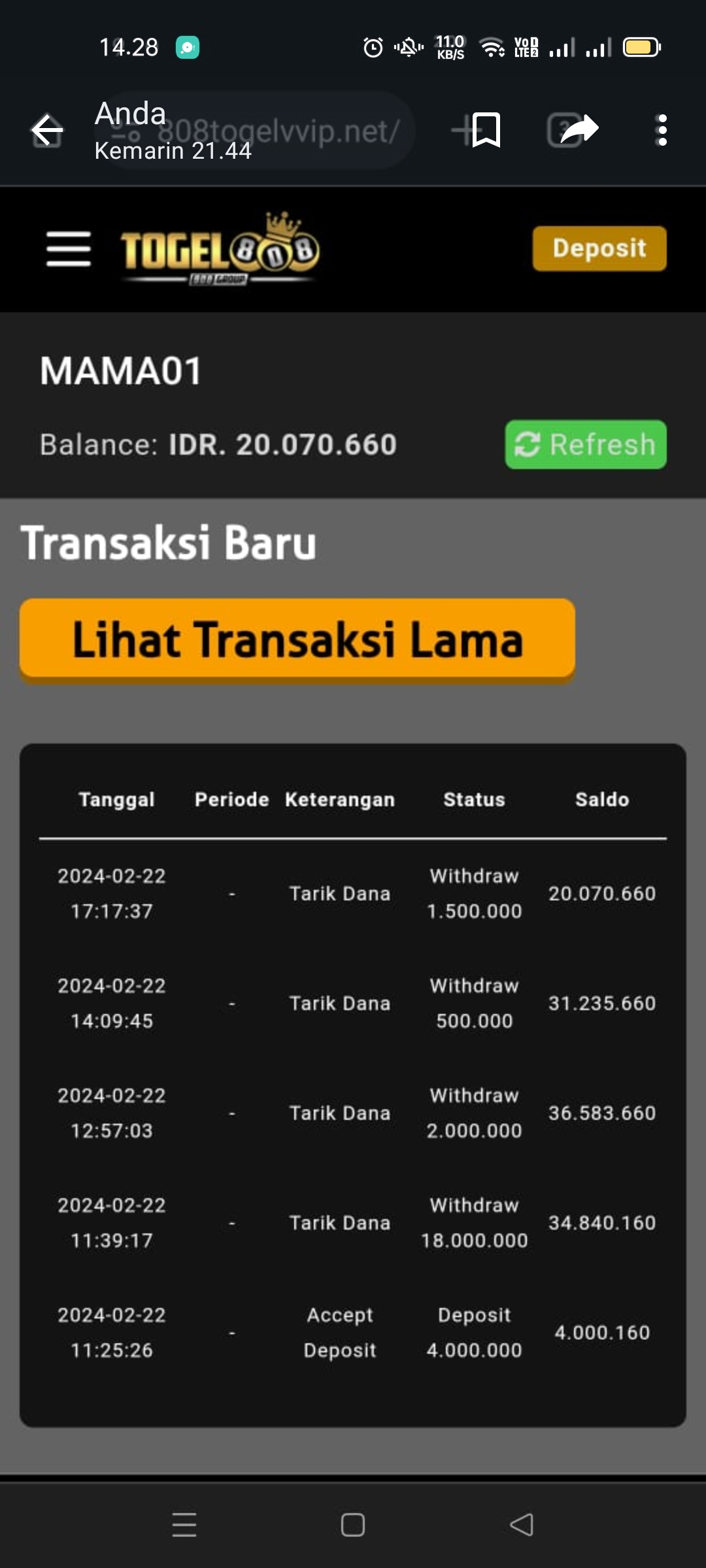 Main di lunatogel jp 55JT di blokir permanen keterangan transaksi tidak wajar hah tidak wajjar gmna saya beting diluar jam pasar tolong bos richard keterlaluan ini