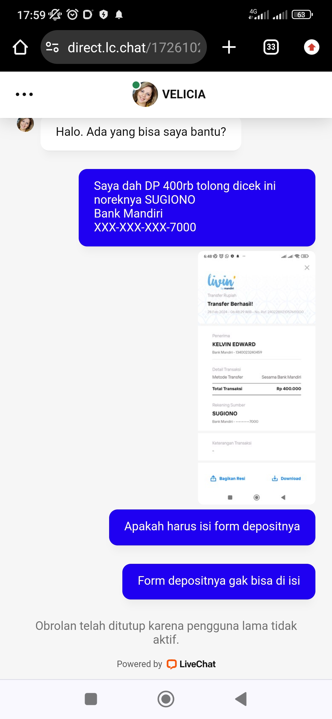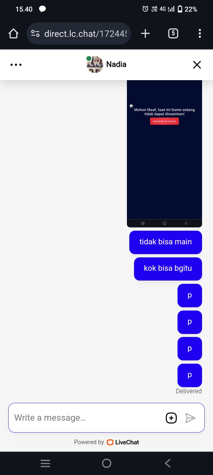 Udah Li live chat gk pernah di read.